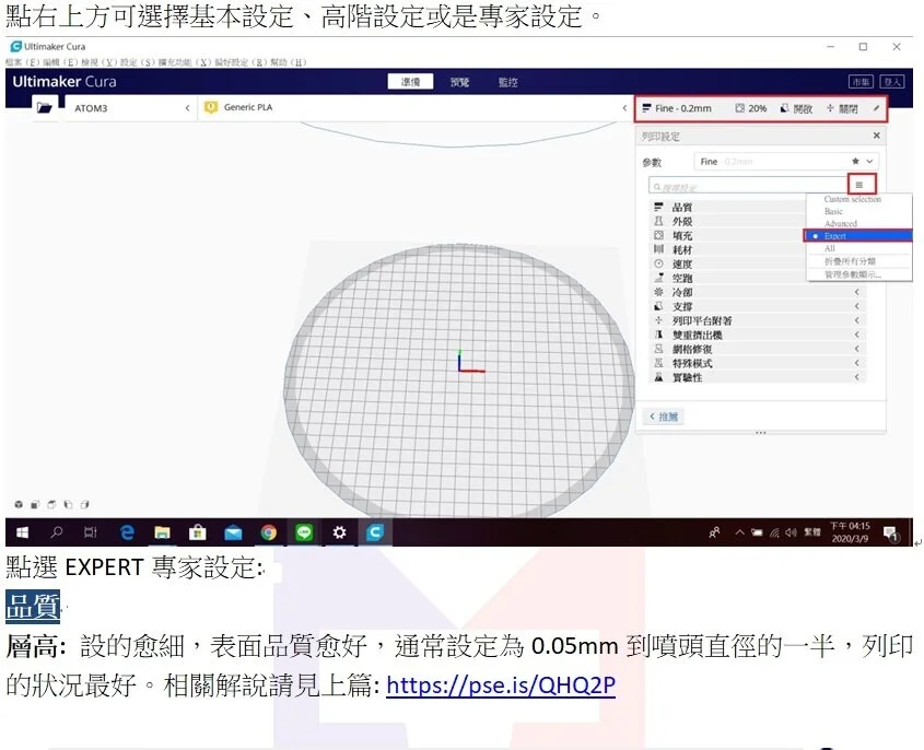 3D列印機ATOM3 使用CURA4.5版教學 Posted on March 11, 2020 by Mengyuan Tsai and tagged 3d列印 3d列印機 atom3D列印機 cura 上升線 水平擴展.